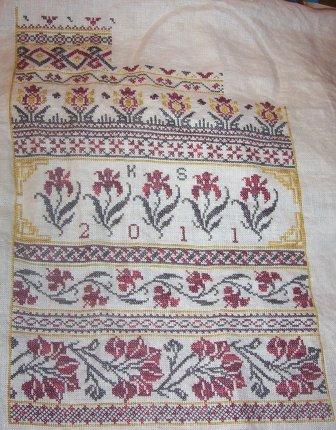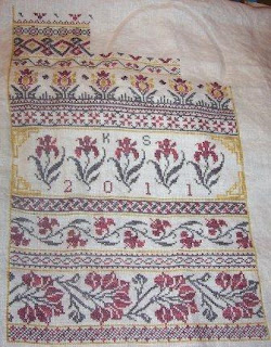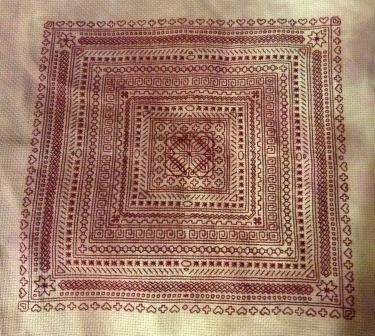 I've finished 5 pages of 16. I always start at the bottom right corner and work my way across the bottom row of pages, then go back to the right and start the next row of pages. My stitches just look and lay better. I'll post another picture when I get the 6th page finished.